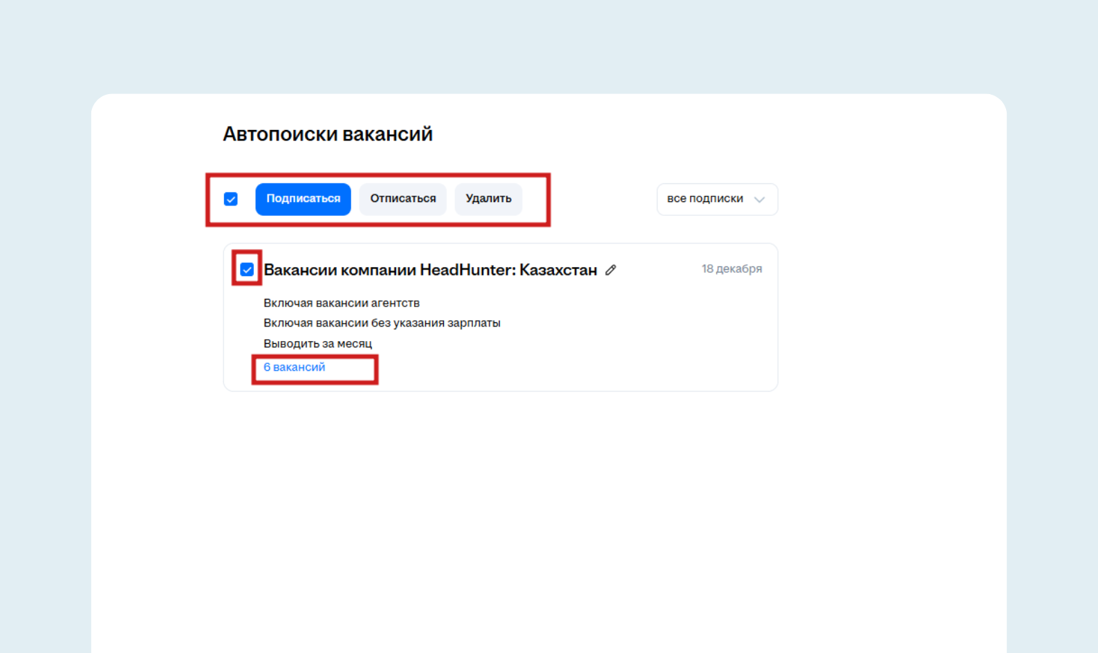 Один из способов настройки автопоиска — подписка на новые вакансии компании.