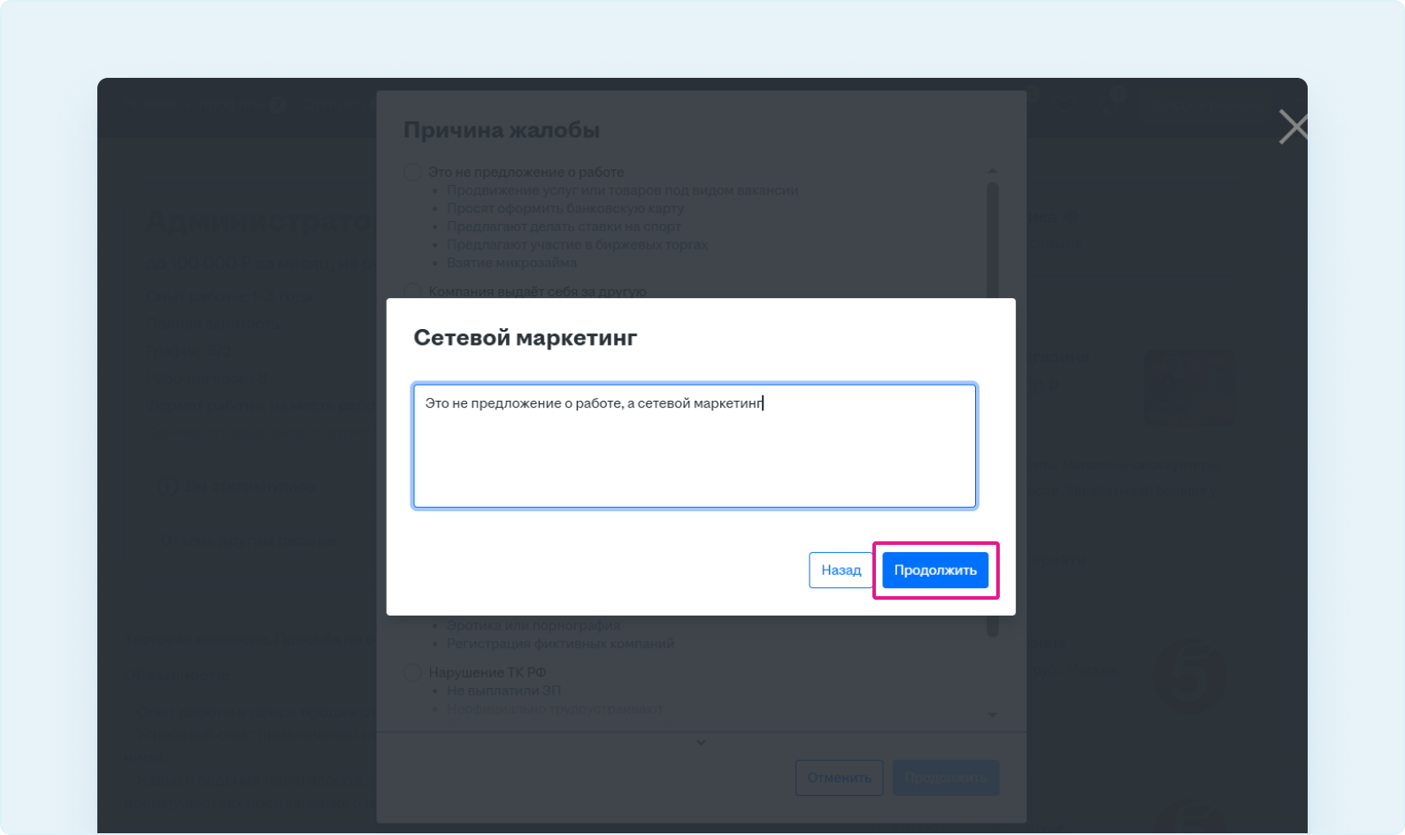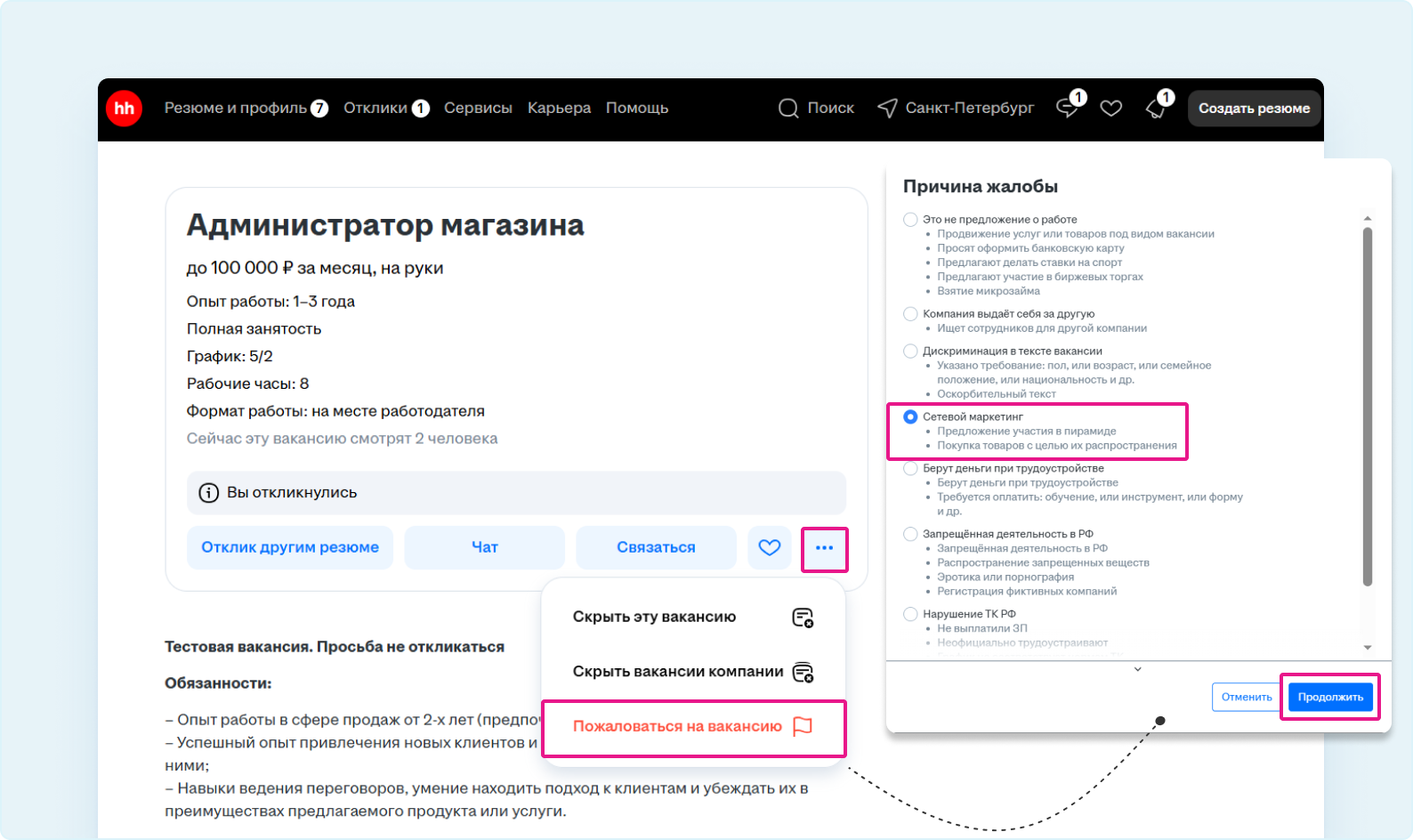 Сообщения о нарушениях помогают поддерживать порядок и безопасность на hh.ru.