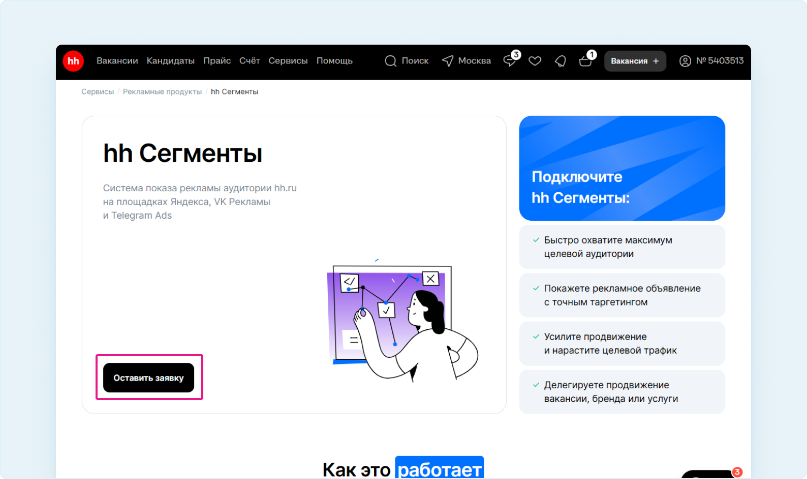Ознакомиться с требованиями к рекламному формату «hh Сегменты».