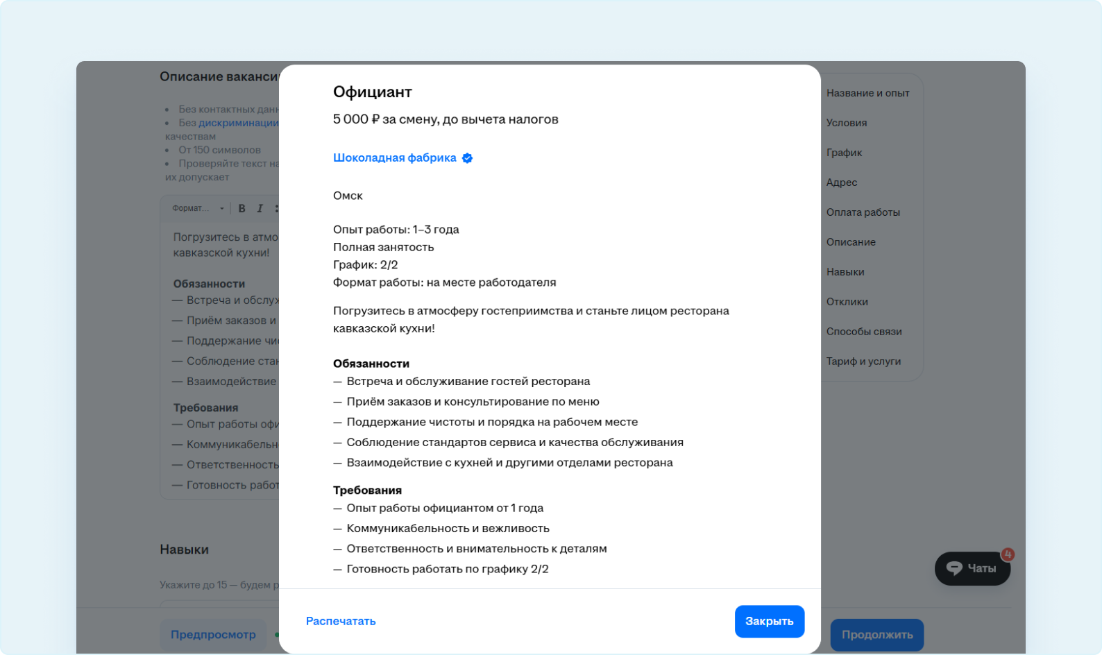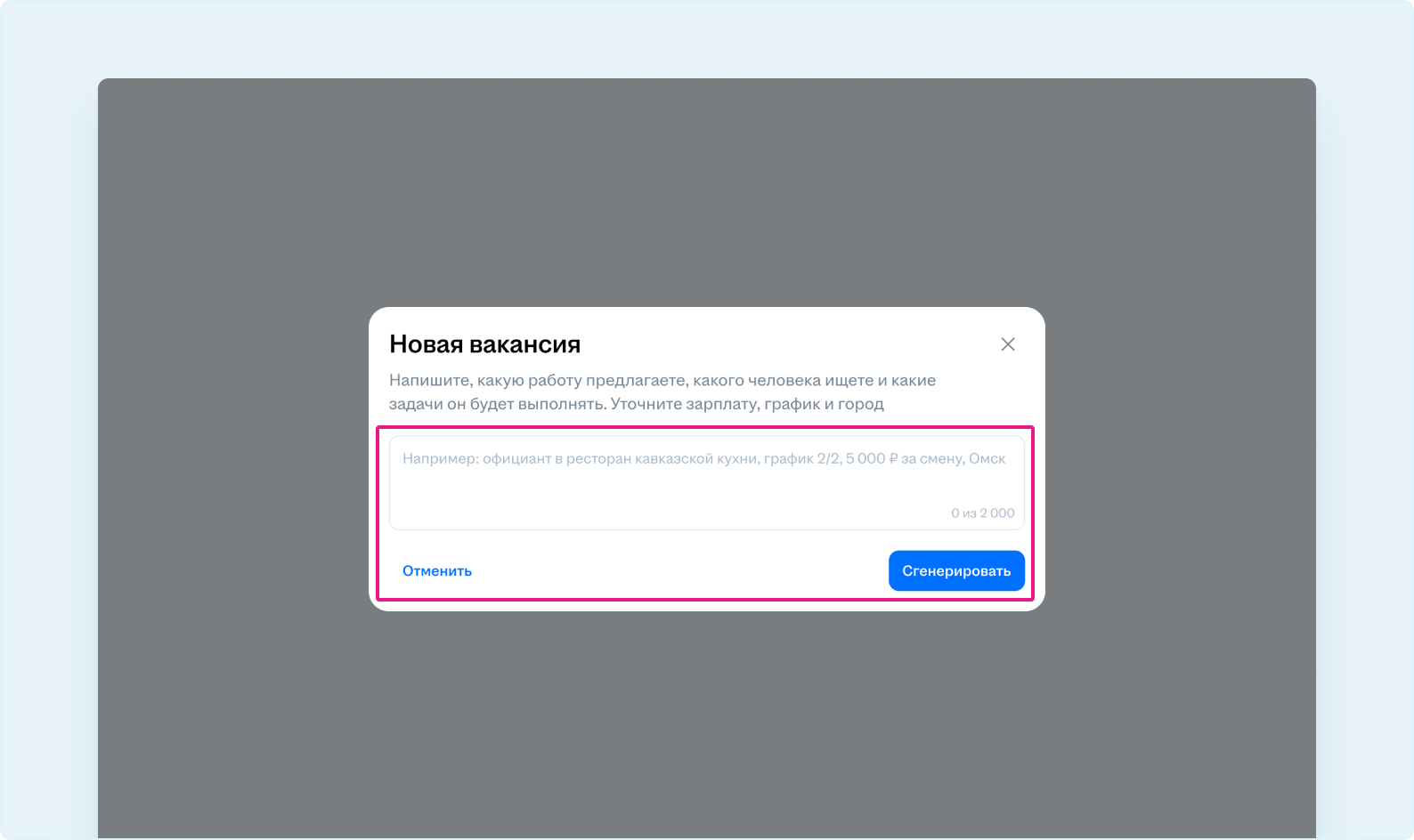Совет: опишите вакансию так, как если бы объясняли задачу коллеге — это поможет ИИ лучше понять ваши потребности.