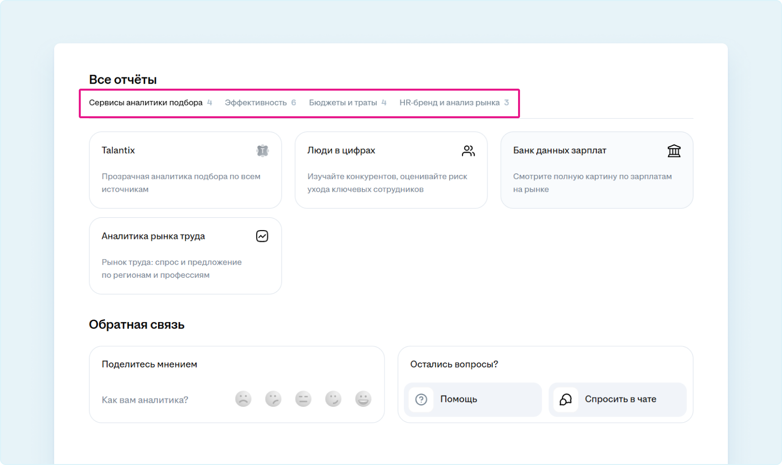 В блоке «Обратная связь» можно оценить работу аналитики и поделиться предложениями по её улучшению.