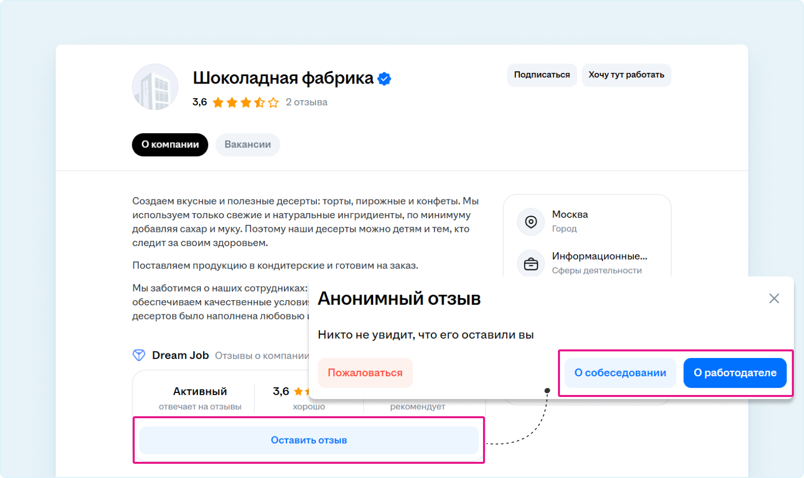 С подробными правилами модерации отзывов Dream Job можно ознакомиться здесь.