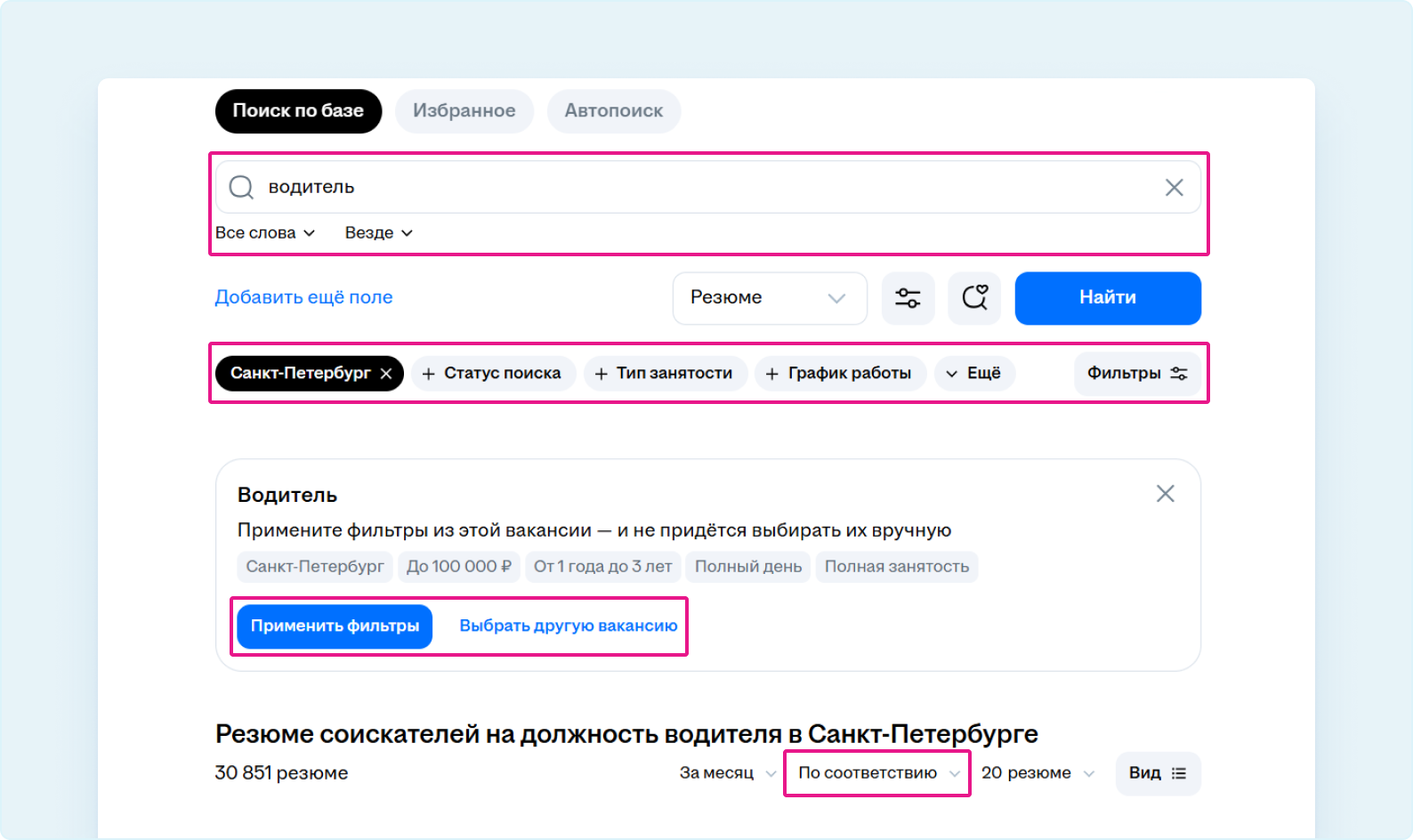 Умный поиск hh.ru экономит ваше время, находя самых подходящих кандидатов быстрее.