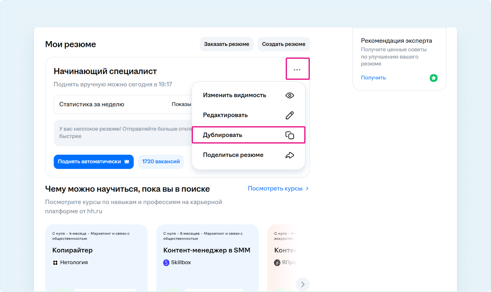 Совет: используйте разные резюме для разных направлений поиска — это увеличит шансы найти подходящую работу.