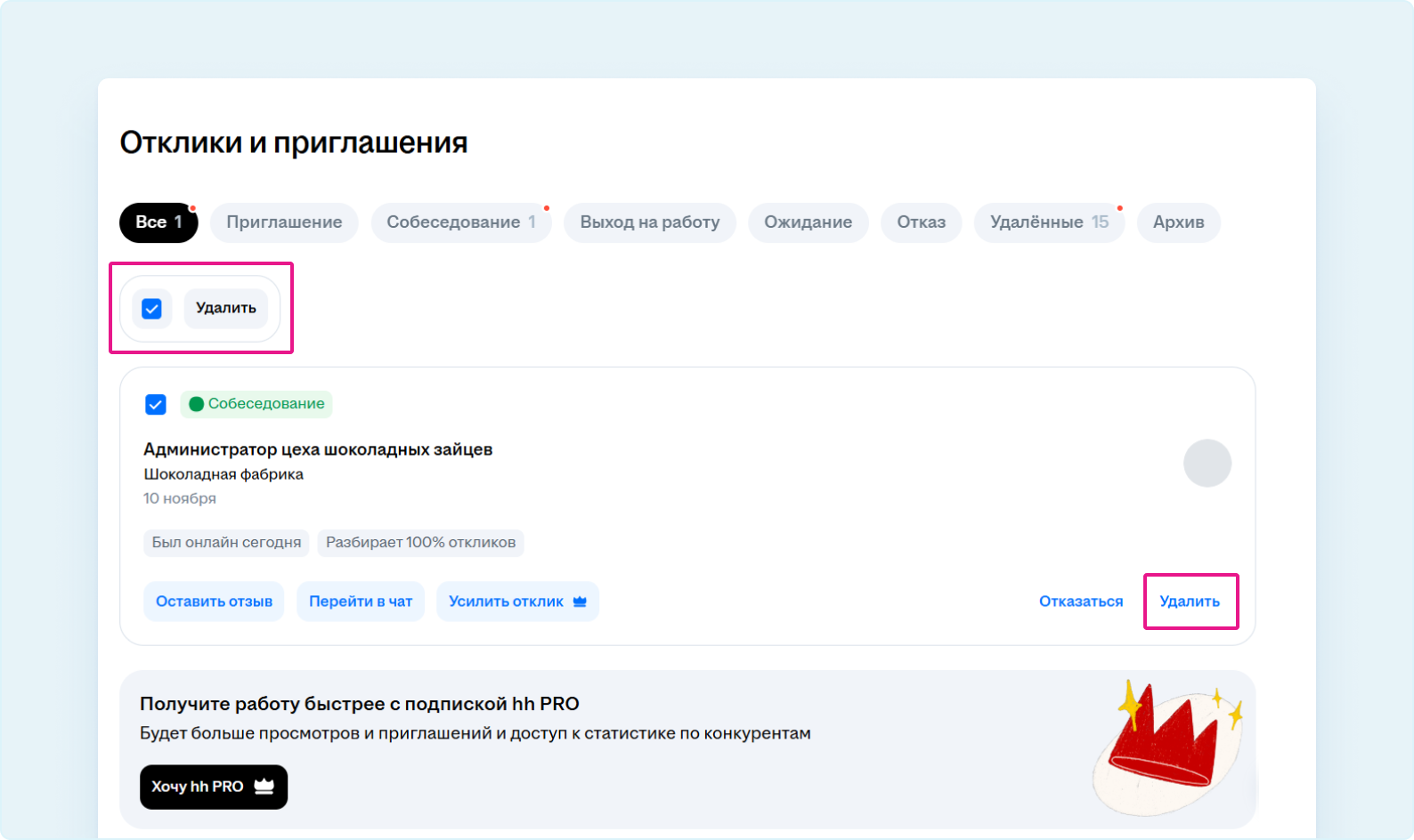 Отклик — это возможность отправить своё резюме на заинтересовавшую вас вакансию.